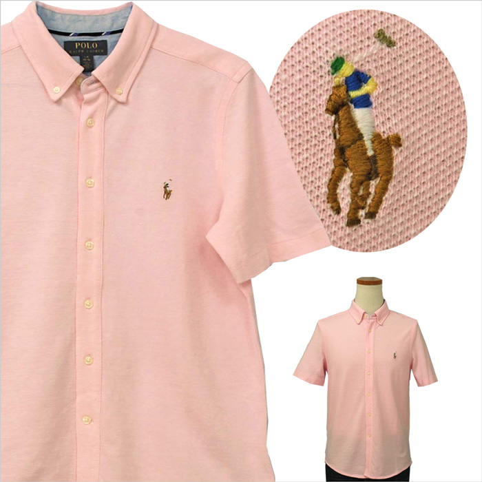ポロ ラルフローレン 半袖鹿の子 オックスフォードシャツ ホワイト ブルー ピンク